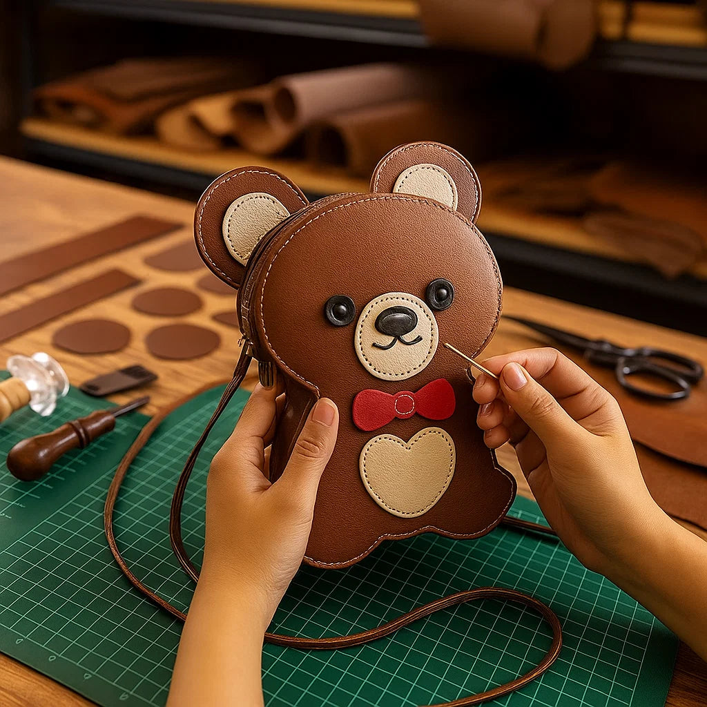 Cada puntada en el Oso Cariñoso refleja la pasión de los artesanos. Usamos piel natural de alta calidad para asegurar durabilidad y resistencia.